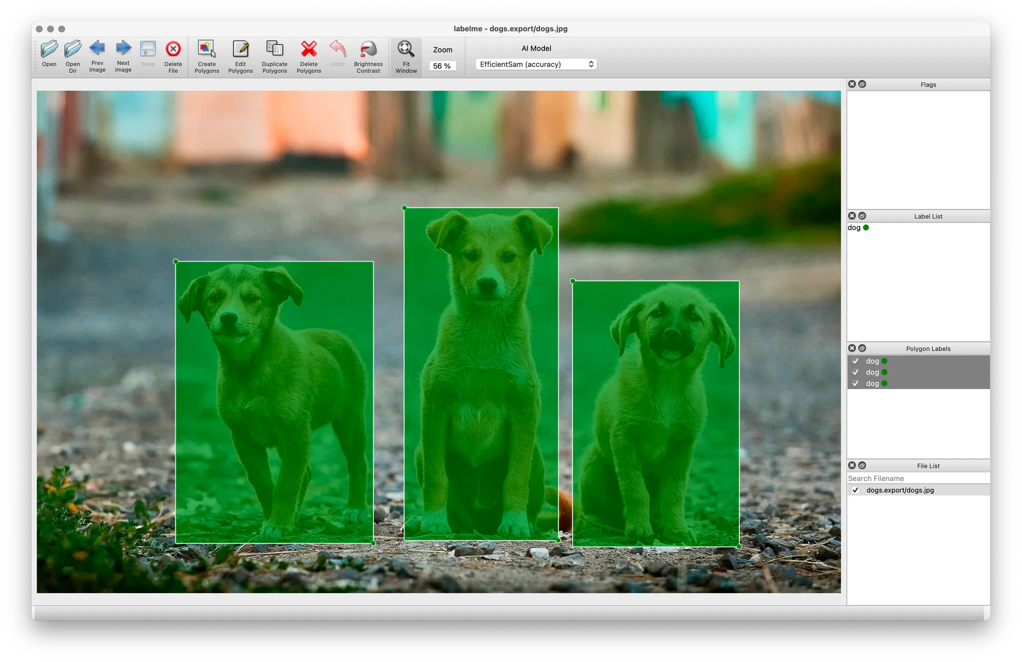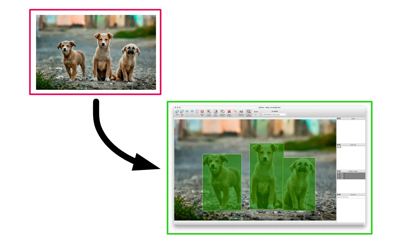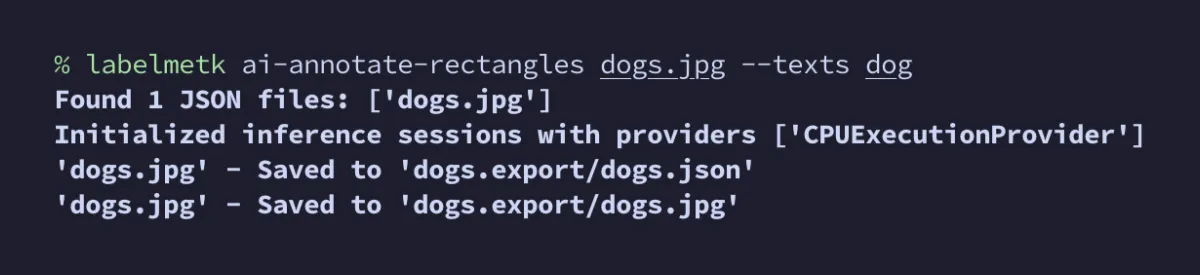 labelmetk ai-annotate-rectangles dogs.jpg --texts dog