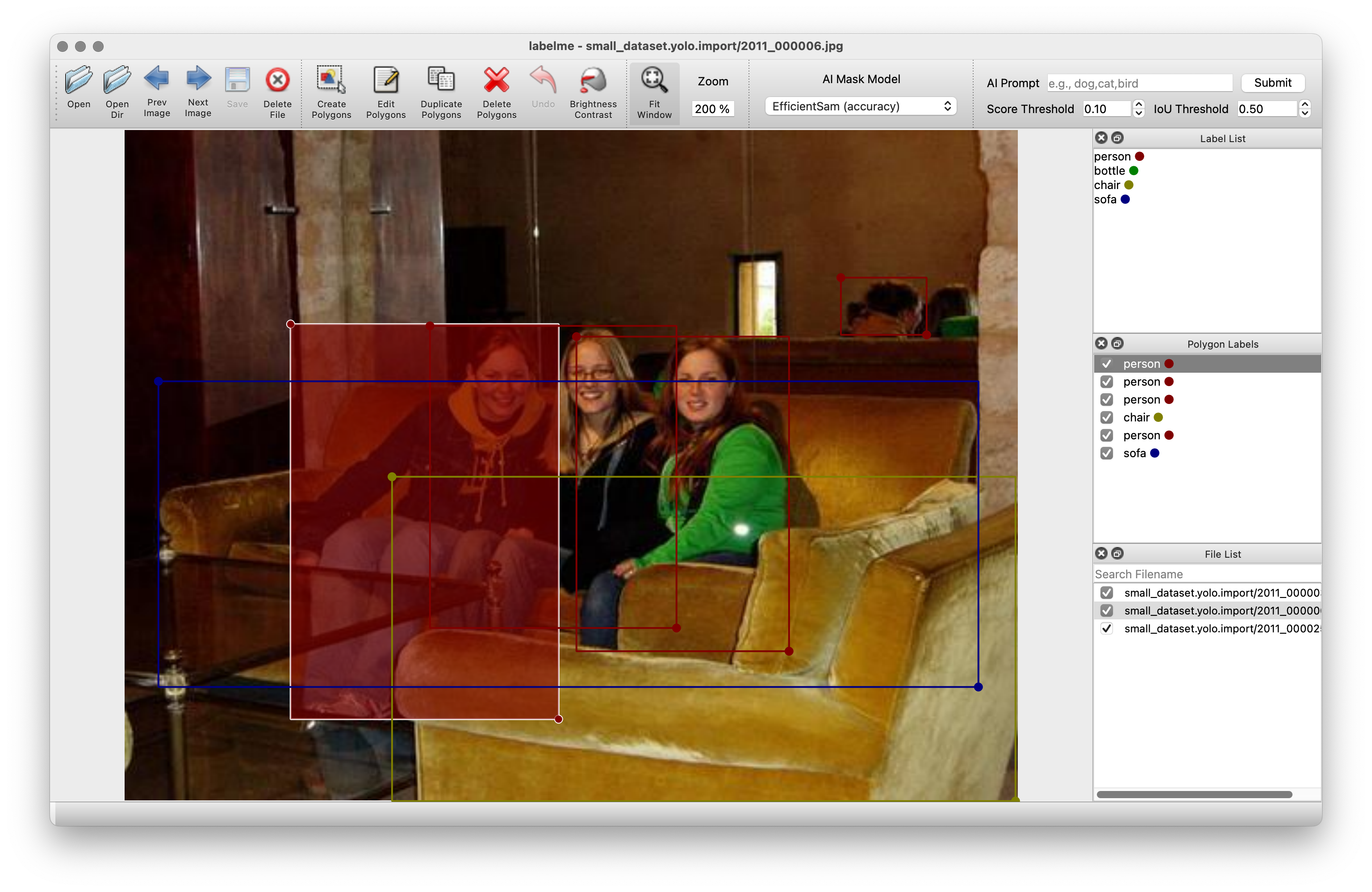 You can open and edit the imported dataset with Labelme annotation app: