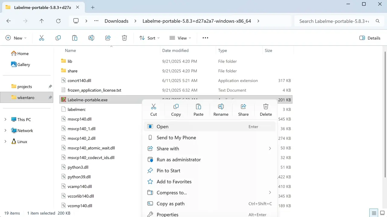 Labelme.exefor Windows,Labelme.appfor macOS,Labelmeexecutable for Linux.