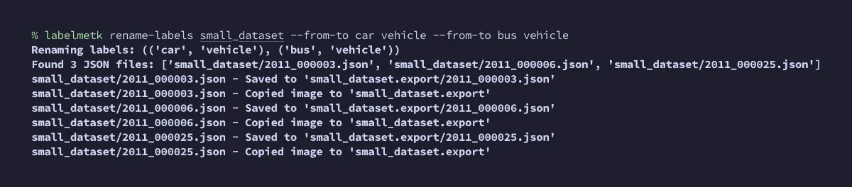 labelmetk rename-labels small_dataset --from-to car vehicle --from-to bus vehicle