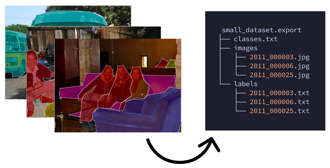 $ labelmetk export-to-yolo small_dataset/ --class-names bottle,bus,car,chair,person,sofa